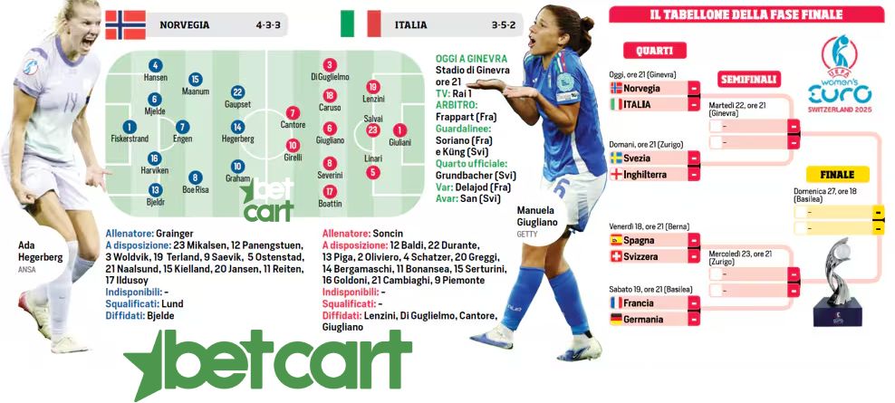 در ادامه رقابت‌های پرهیجان مرحله حذفی یورو بانوان 2025، یکی از تقابل‌های کلاسیک فوتبال بانوان رقم خواهد خورد: نروژ – ایتالیا. این بازی، جدال سنت‌ گرایان فوتبال اروپا است؛ تیم‌هایی که در دهه‌ های گذشته نقش مهمی در شکل‌ گیری فوتبال زنان در اروپا داشته‌اند.